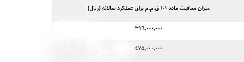 در صورتی که دندانپزشک شخص حقیقی باشد، مشمول استفاده از معافیت ماده 101 ق.م.م خواهد بود. معافیت ماده 101 مالیات دندانپزشکان 1402 بر اساس جدول زیر محاسبه میشود: