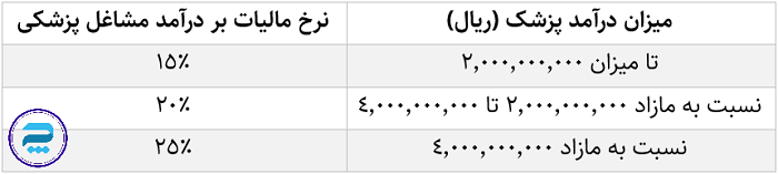 بر این اساس میزان مالیات قابل پرداخت پزشکان مستقل بر اساس درآمد آنها به نرخ زیر محاسبه میشود: